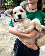 Special moment at the temples with the stray dogs and being able to support Projects Abroad and the other volunteers to build a temporary fence to keep the dogs safe from the busy road .